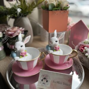 Ultra cuki,csészikében csücsülő nyuszkó figura.