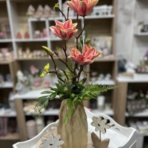 24 cm magas tavaszváró kedvesség,élethű virágokkal,nyírfa ággal,pillangókkal.
