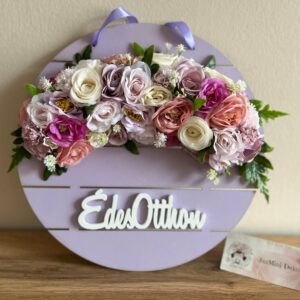 30 cm átmérőjű,kezelt fa,sík alapos kopogtató mesés,romantikus virágokkal.