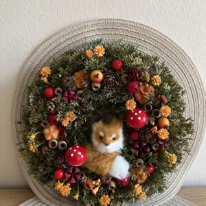 33 cm átmérőjű élethű zöld alapos kopogtató,mely egy kedves mókus figurával készült az ősz jegyében…