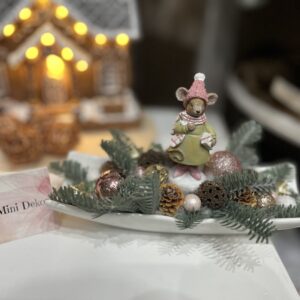 Élethű ezüst fenyővel készített egér lánykás karácsonyi kerámia tál,nelynek minden része maradandó, így évekig itthonod mesés dísze lehet vagy csodás ajándéknak is.