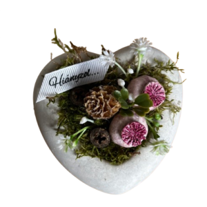 11*11 cm-es,szív kaspóba épített,kerámia kövirózsákkal készült kedvesség megemlékezéshez. Minden része maradandó.