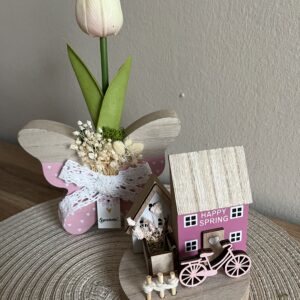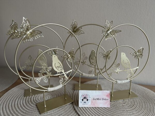 24 cm magas, 19,5 cm átmérőjű, fém nagyon bájos asztali dekoráció madárkával,állítható pillangókkal.