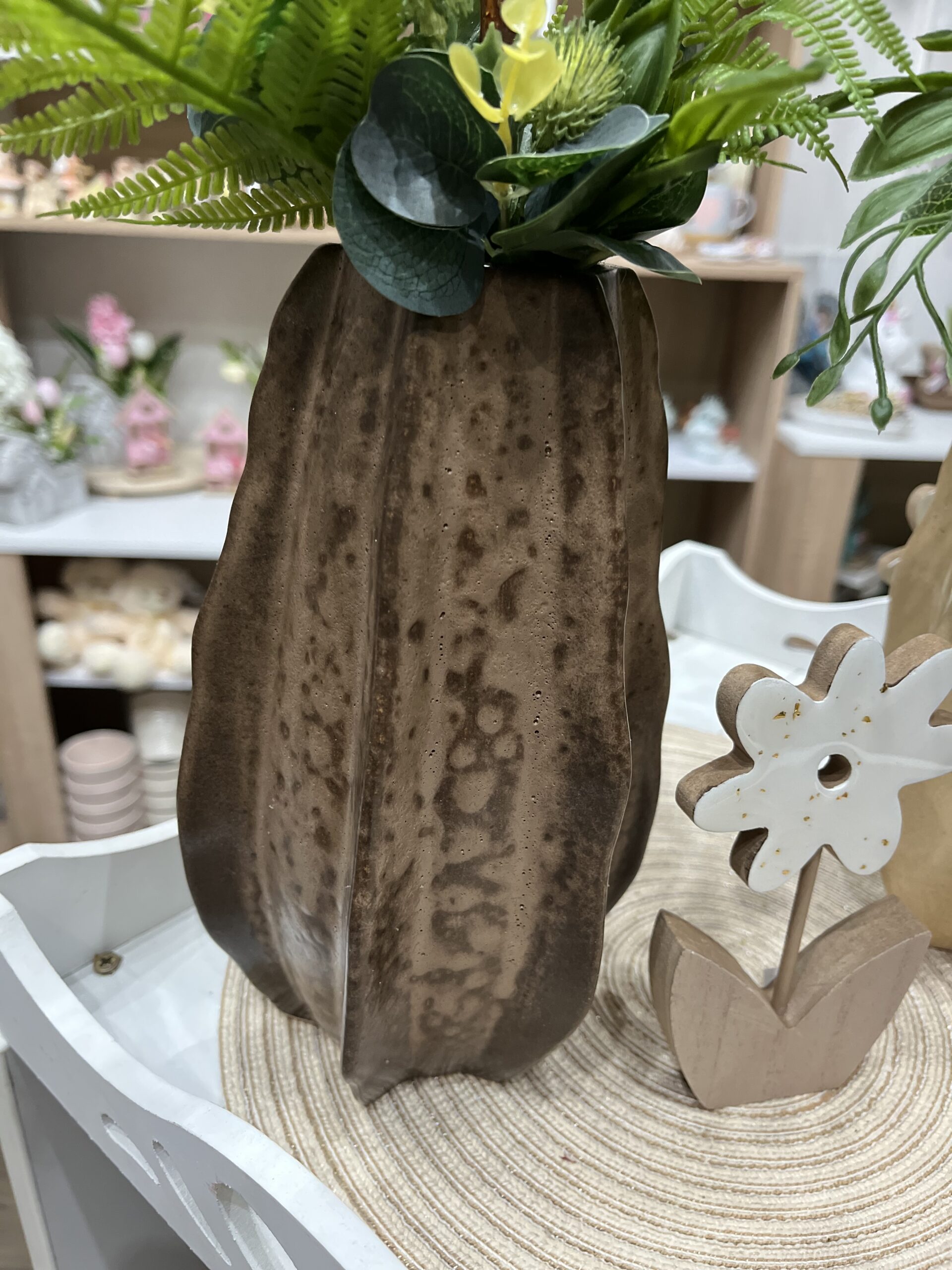Címkék: asztali dekoráció, barna, csillag magnólia, kerámia váza, magnólia, tavasz, zöld