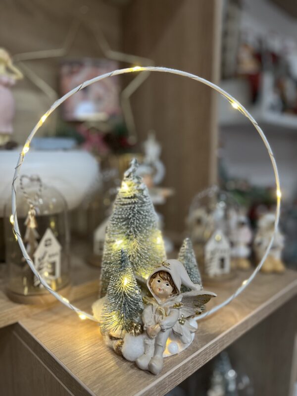 25 cm átmérőjű talpas fém karikás ledes dekoráció,melynek a központi figurája egy bájos tündér lány.