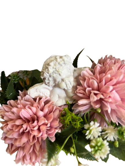 20*17 cm-es, hazai keramikus által készített álló szíves kerámia alapba épített kedvesség megemlékezéshez gipsz angyalkával.