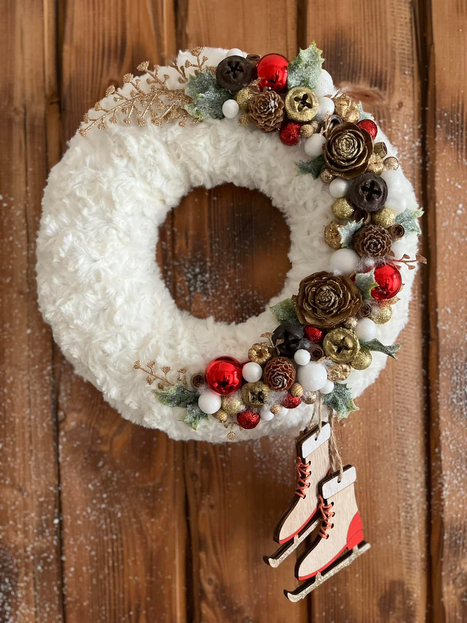 25 cm-es szőrös sík alapra készített,korcsolyás kopogtató.