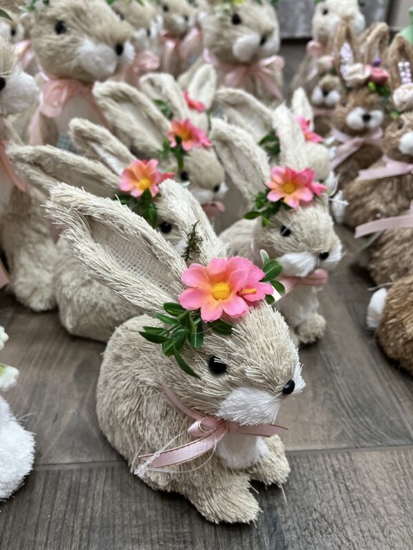 Kb.20 cm-es,természetes alapanyagból készült nyuszkó,aminek a füle hajlítható.