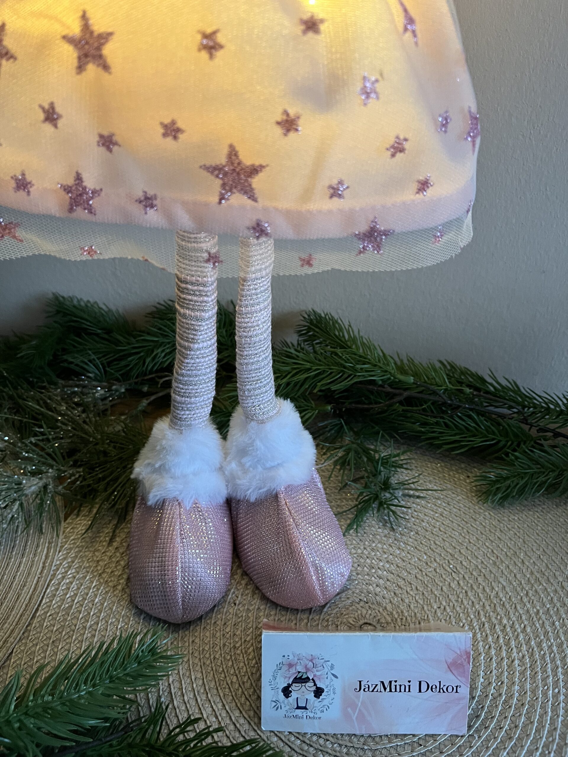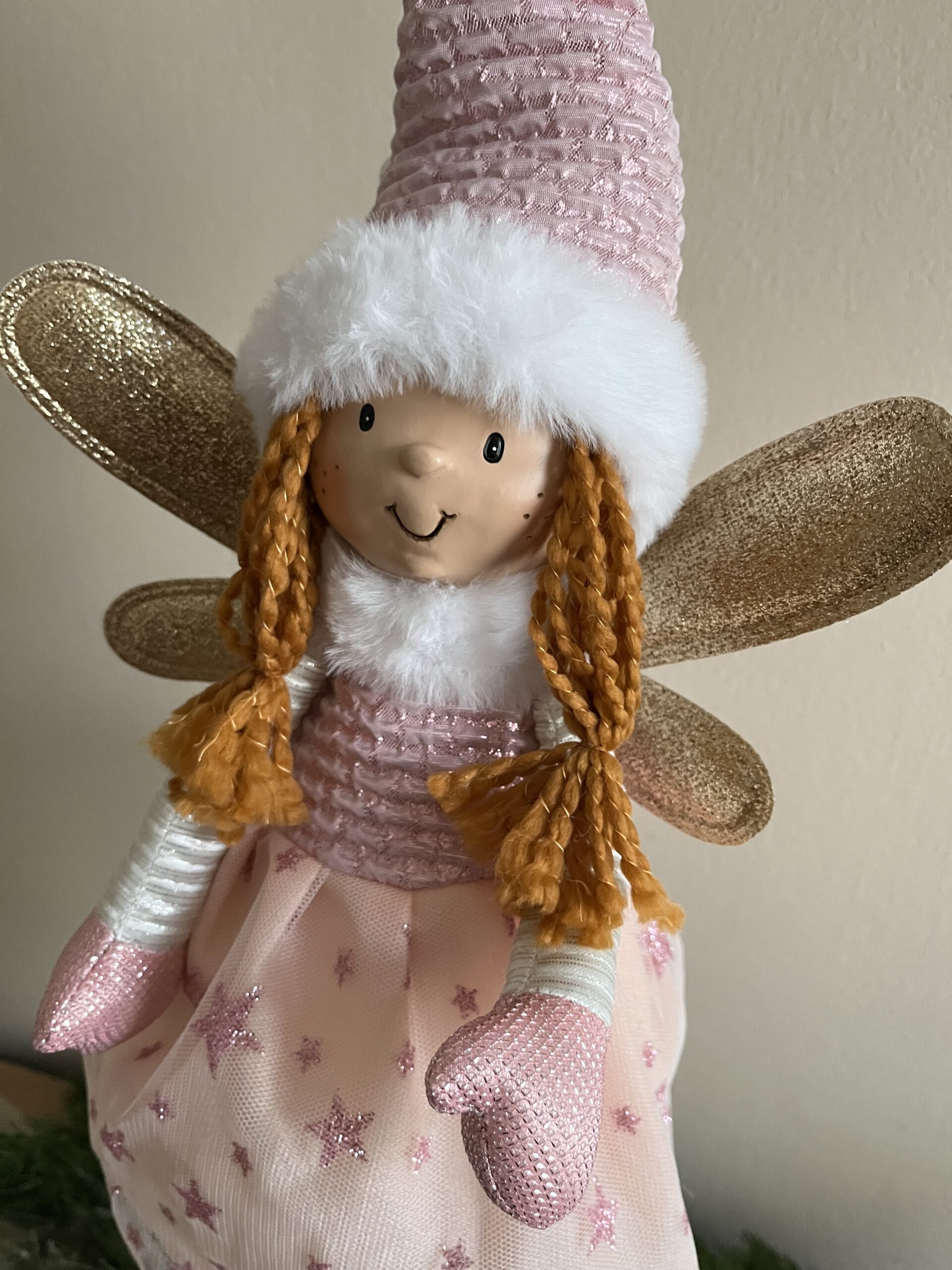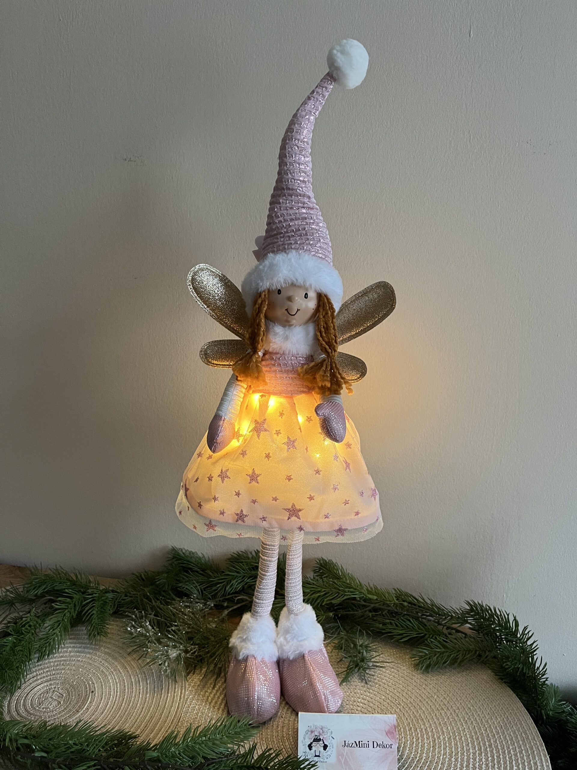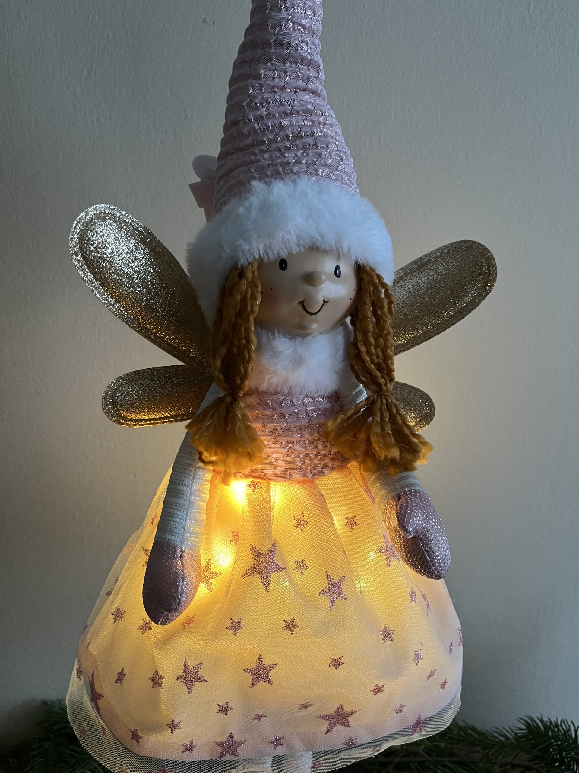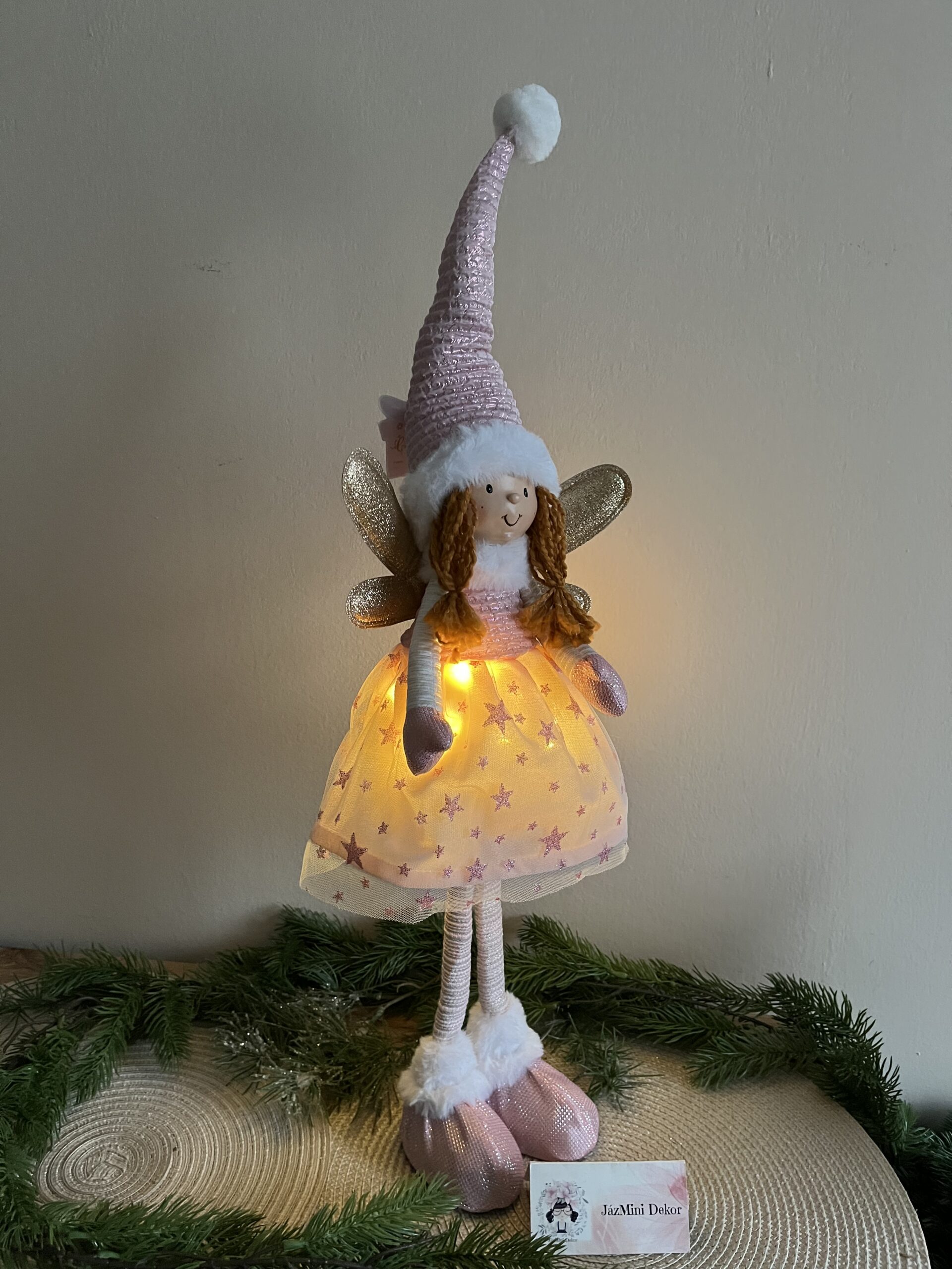 Világító mesés arany /púder színű,69 cm magas ünnepi baba /angyal/ tündér lány csodás kidolgozással és minőséggel.