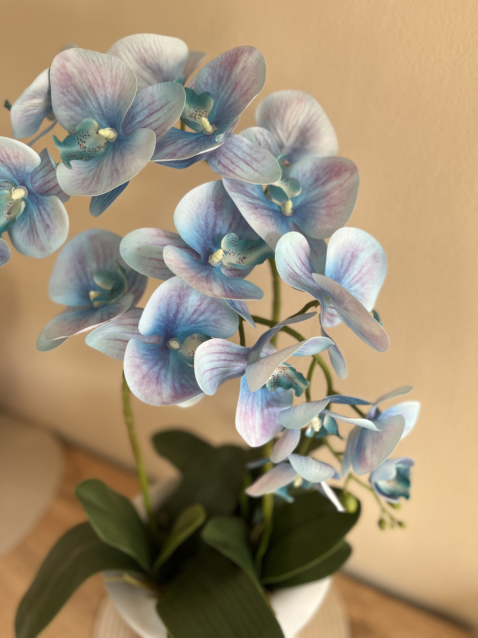 Hazai keramikus által készített,világos szürke kerámia cilinderes,élethű,gondozásmentes lepkeorchidea dekoráció,mely csodás dekorációja lehet otthonodnak.
