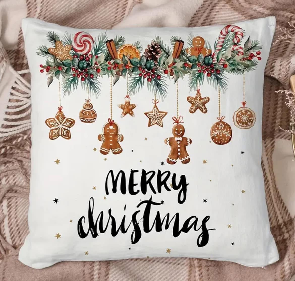 Kedves mézeskalács figurás vászon anyagú,45*45 cm-es, cippzáras párnahuzat.