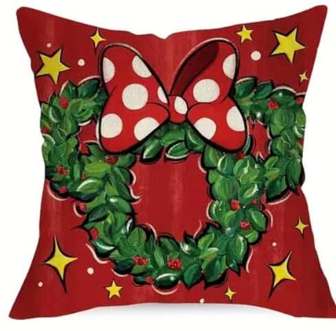 Minnie karácsonyi párnahuzat-piros koszorú
