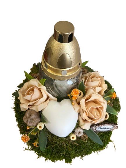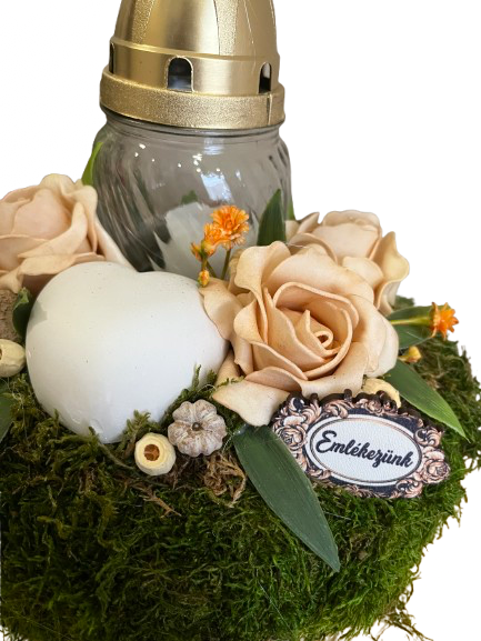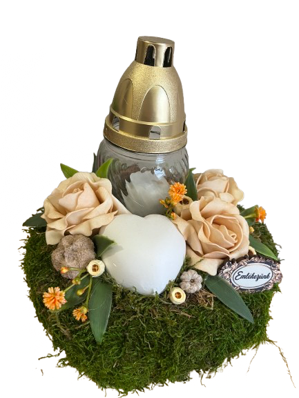 20 cm átmérőjű moha koszorú alapos,mécseses kegyeleti termék szívvel.