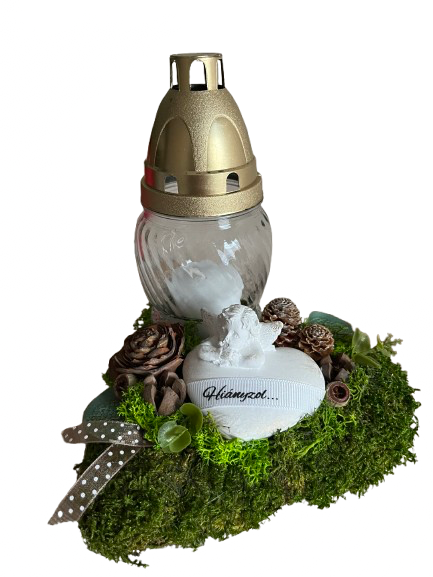 Moha szív alapos angyalkás,üvegmécsessel-Hiányzol