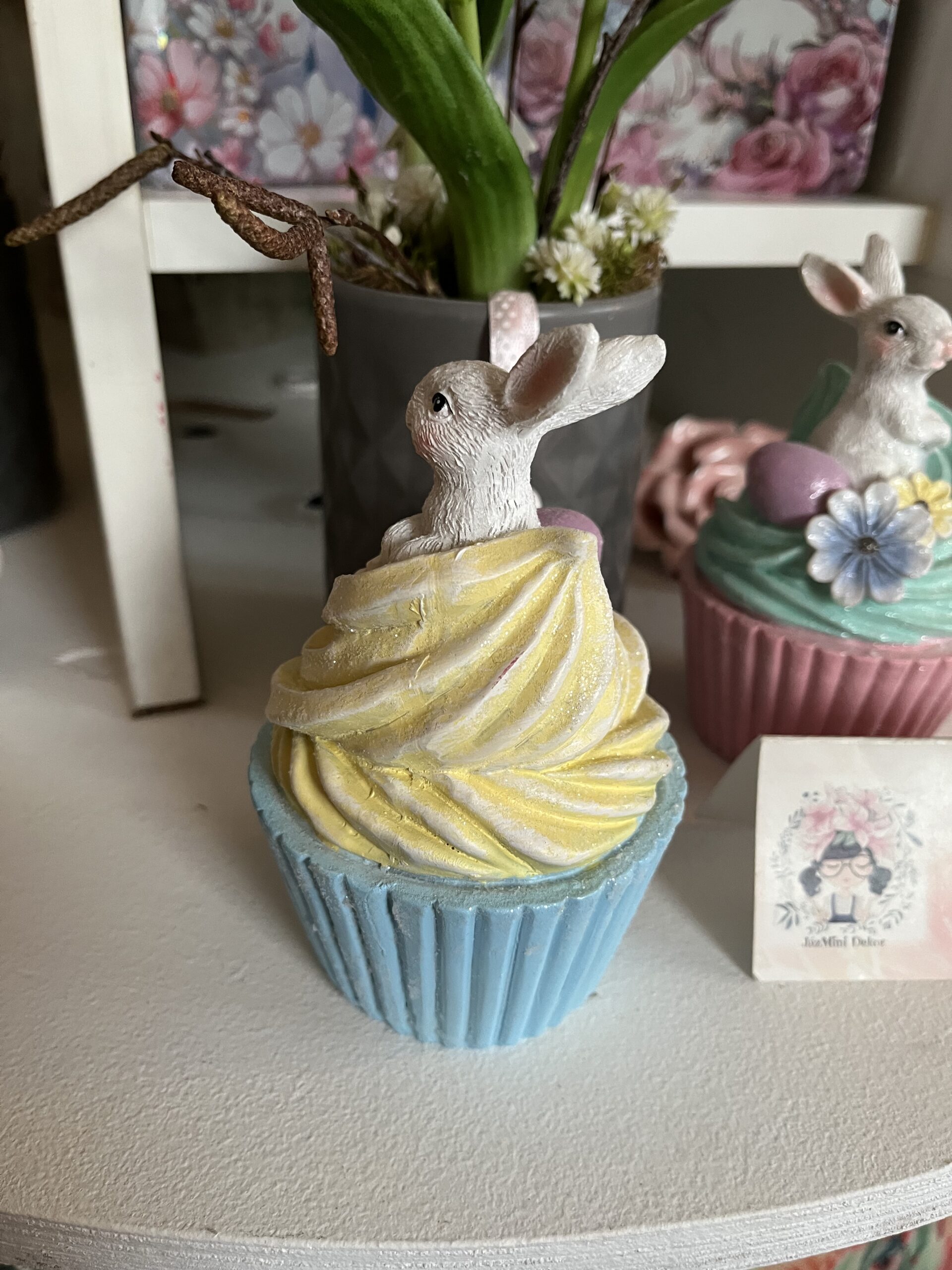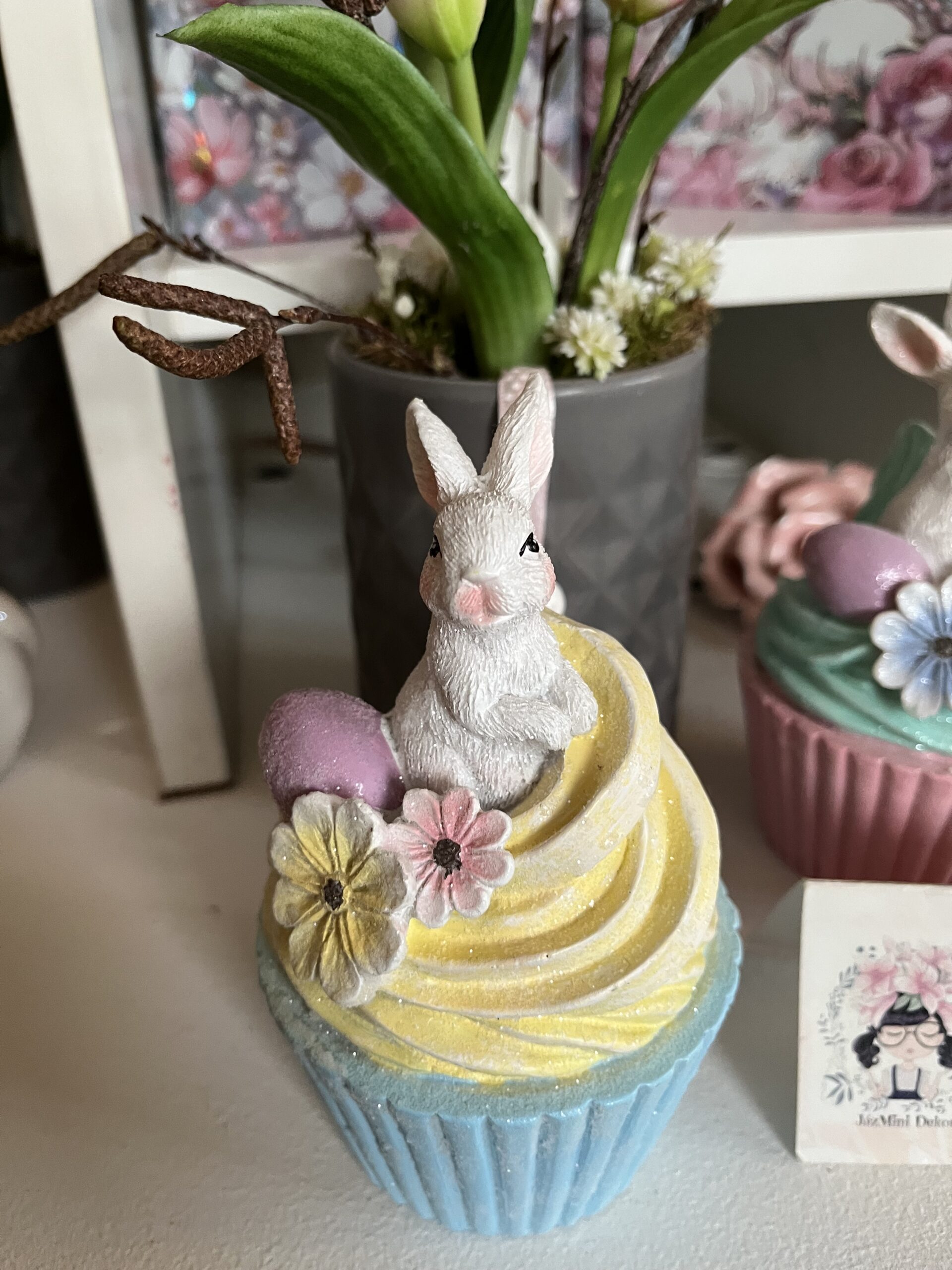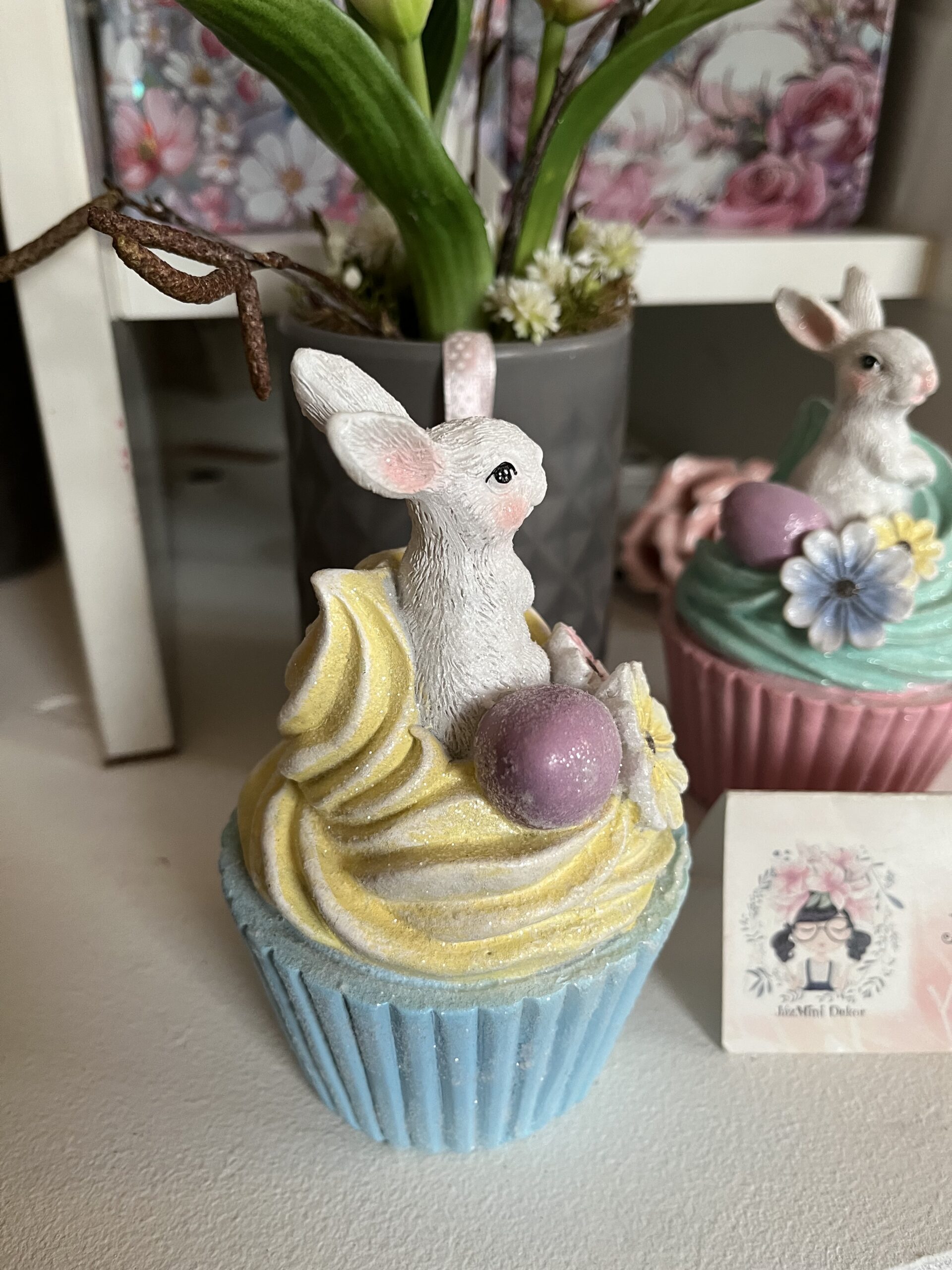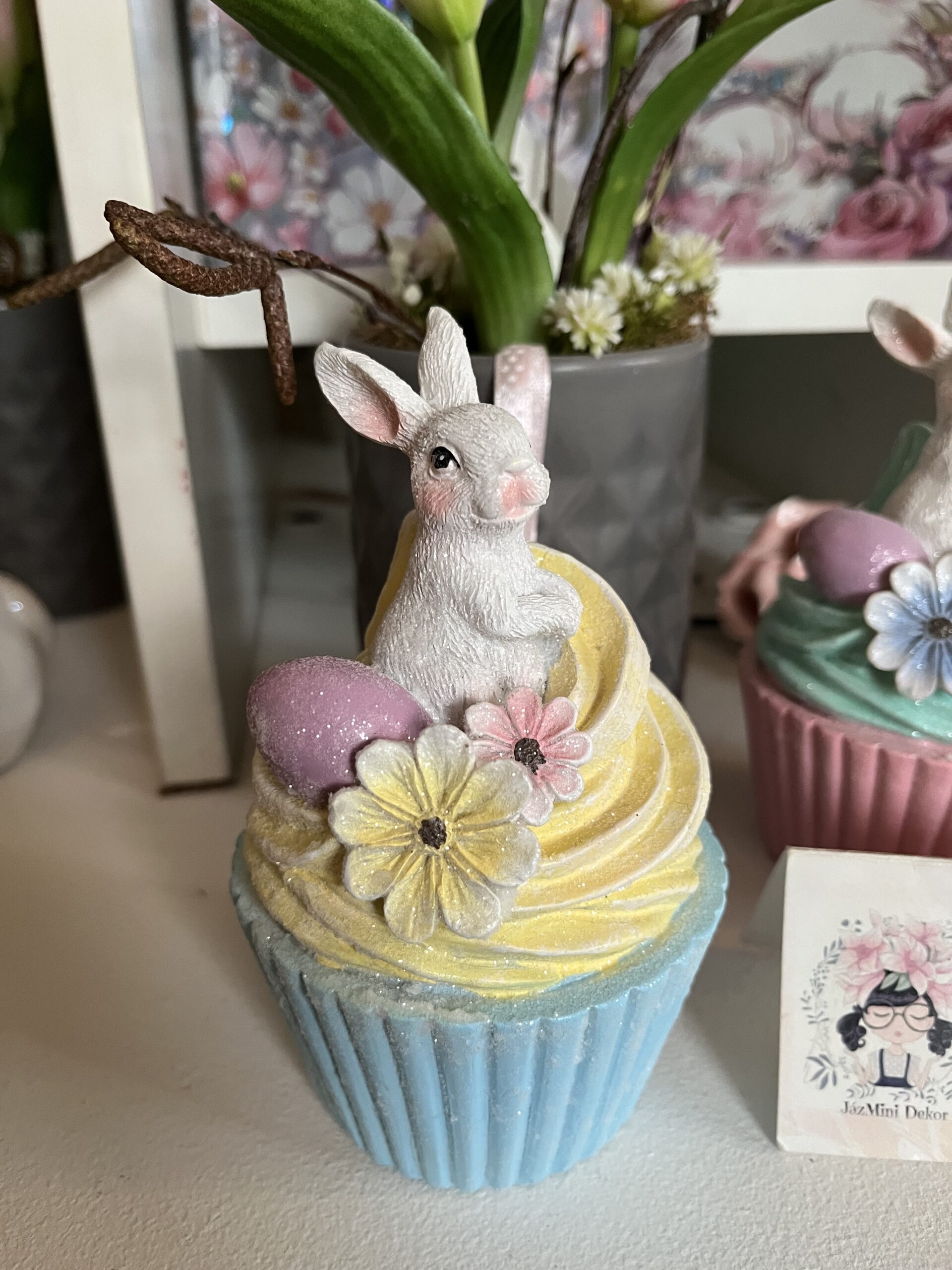 13 cm magas,8 cm átmérőjű,szépen kidolgozott,csillogós mesés húsvéti figura.