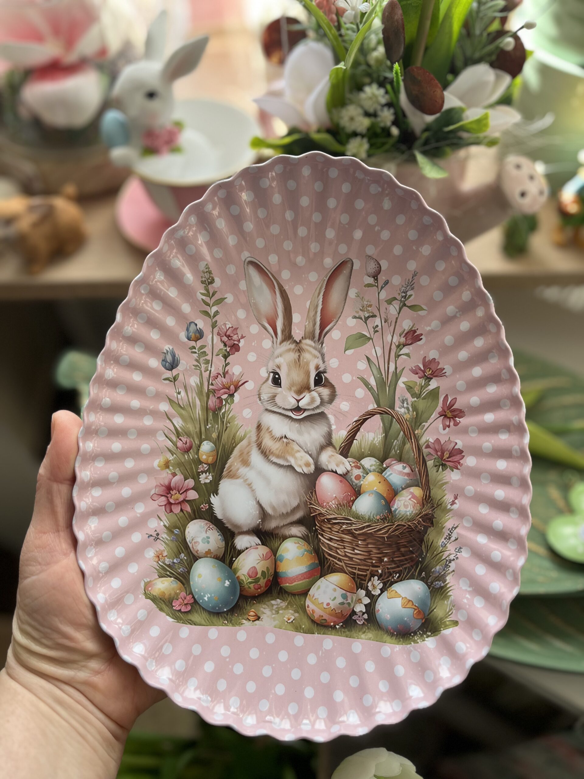 Ez a bájos nyuszis tojás alakú fém tál önmagában is mesés húsvéti hangulatot teremthet az otthonodban,telepakolva mindenféle finomsággal pedig még vonzóbb lehet….
