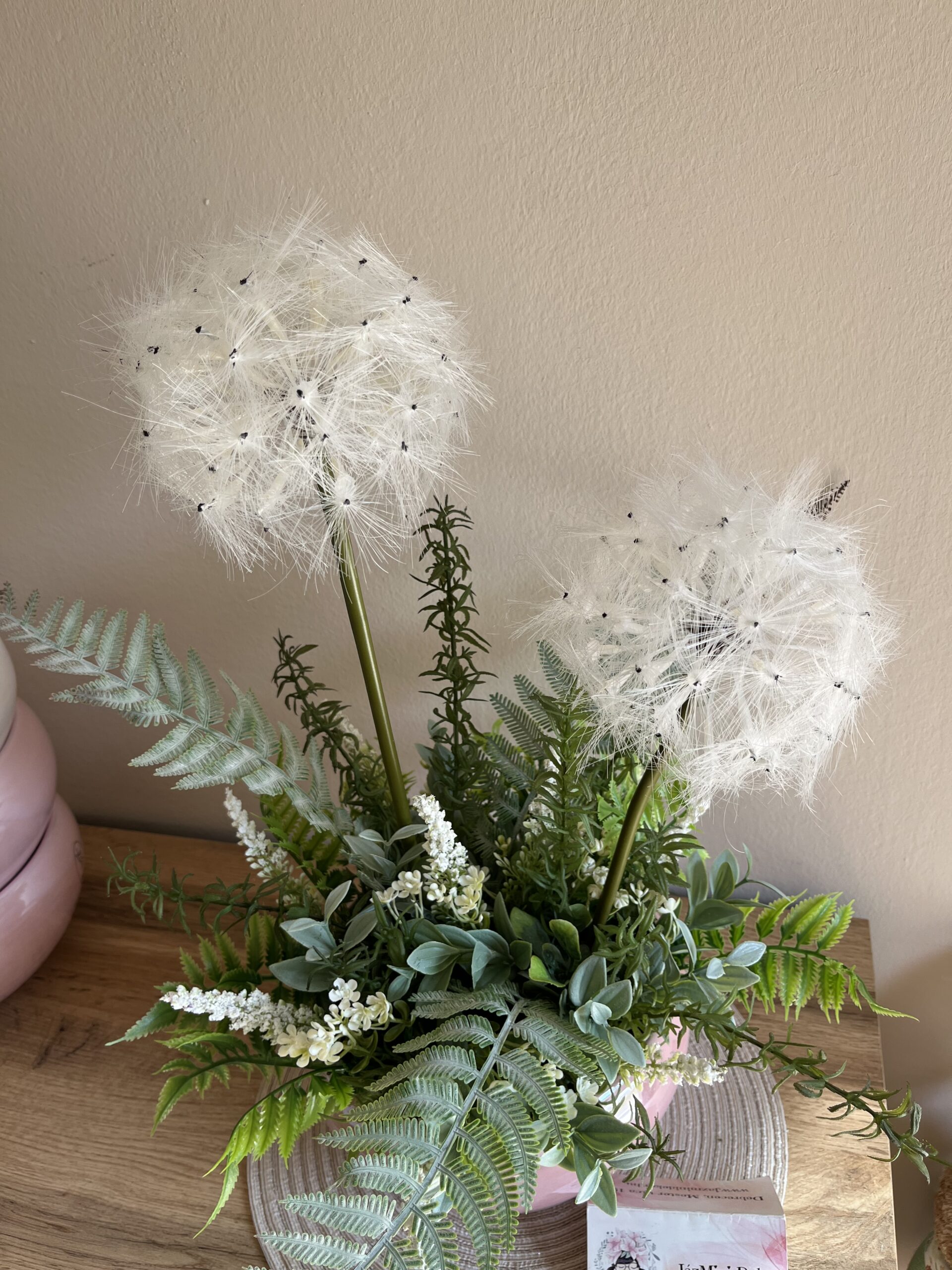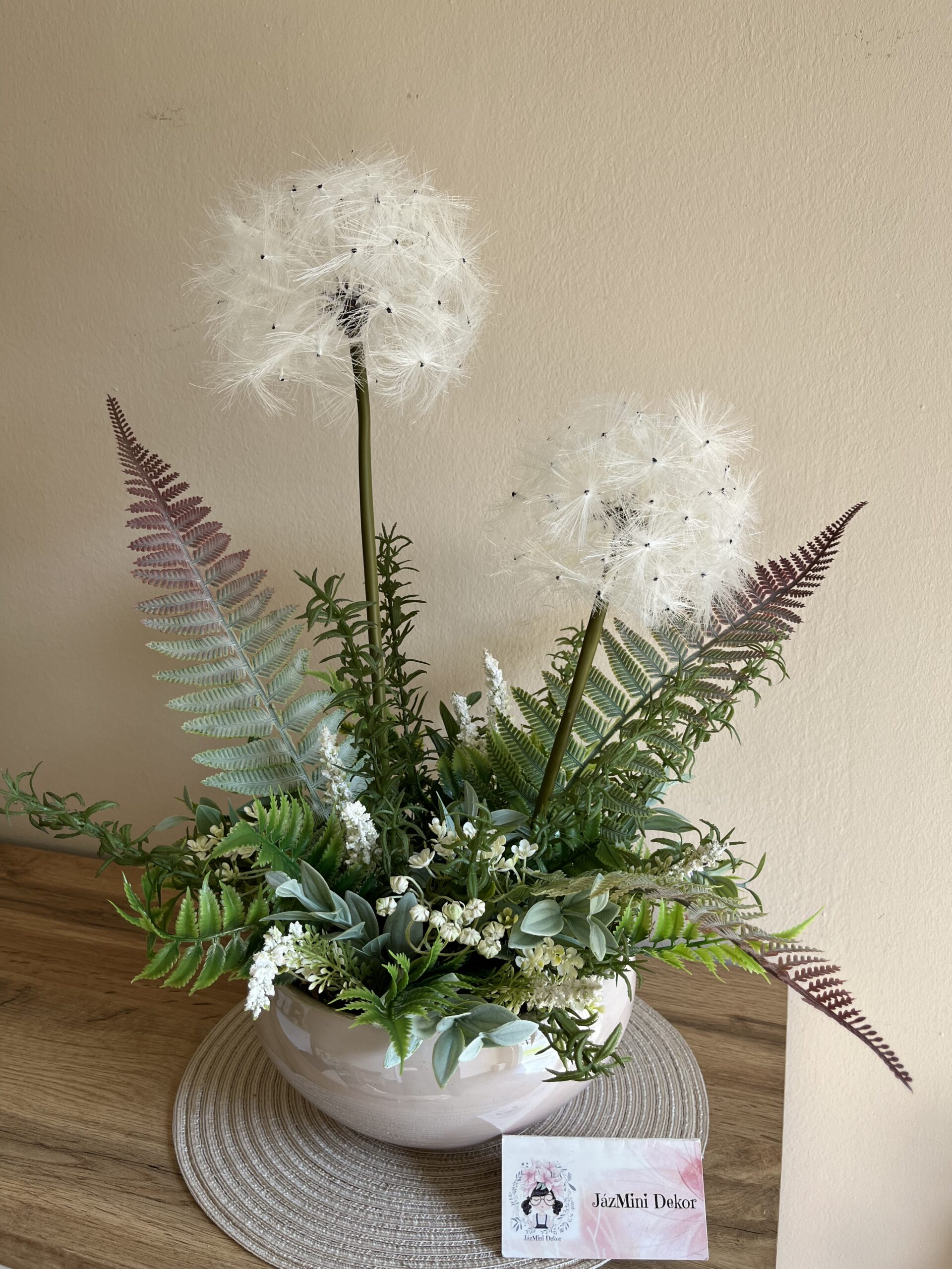 Ez a mesés,élethű pitypangos dekoráció könnyedséggel tölti meg a teret,de tekintélyt parancsol.