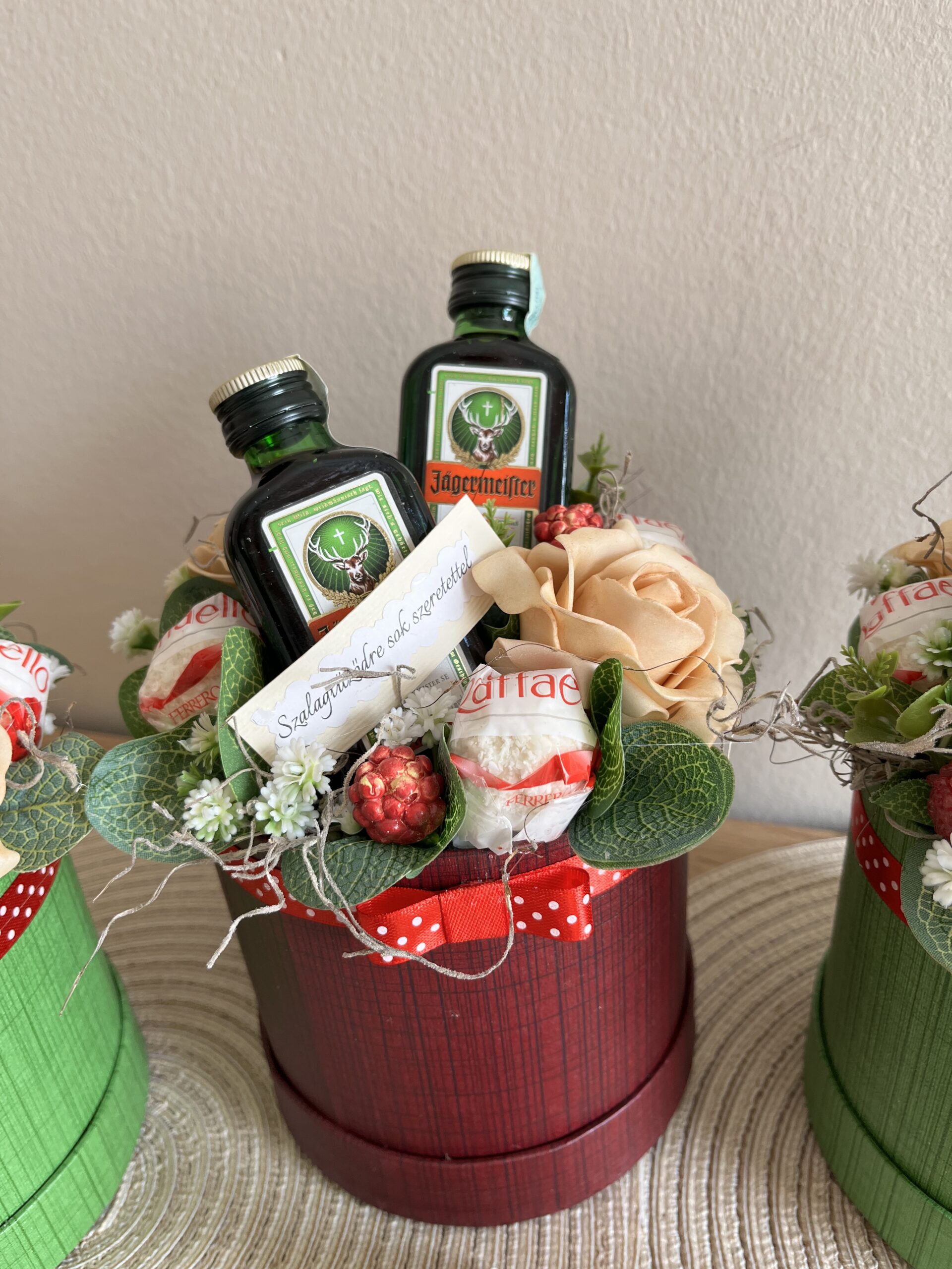 Raffaellos-Jagermeisteres box-szalagavatóra/szülinapra/névnapra-bordó