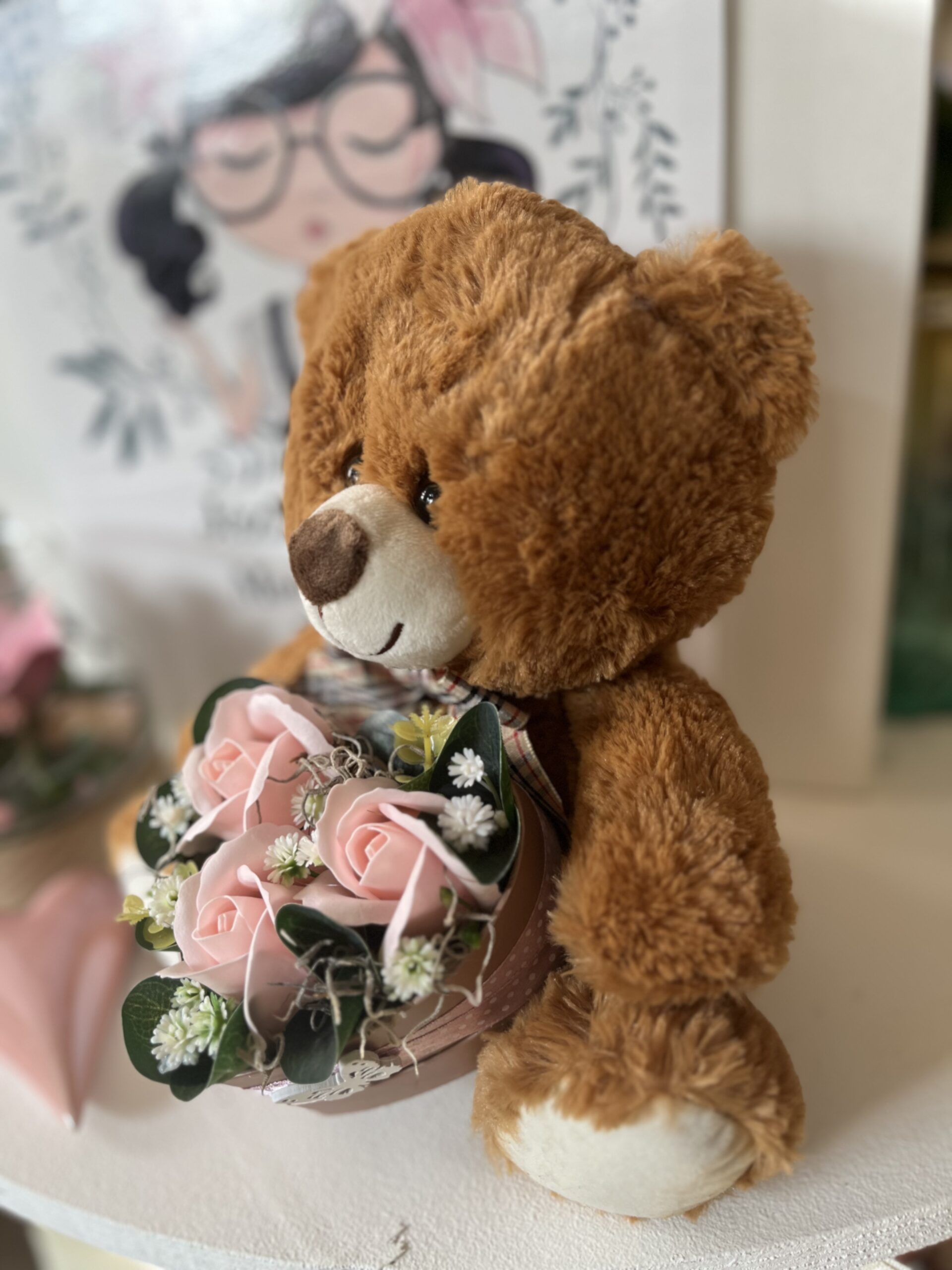 Szíves szappanrózsa box cuki macival