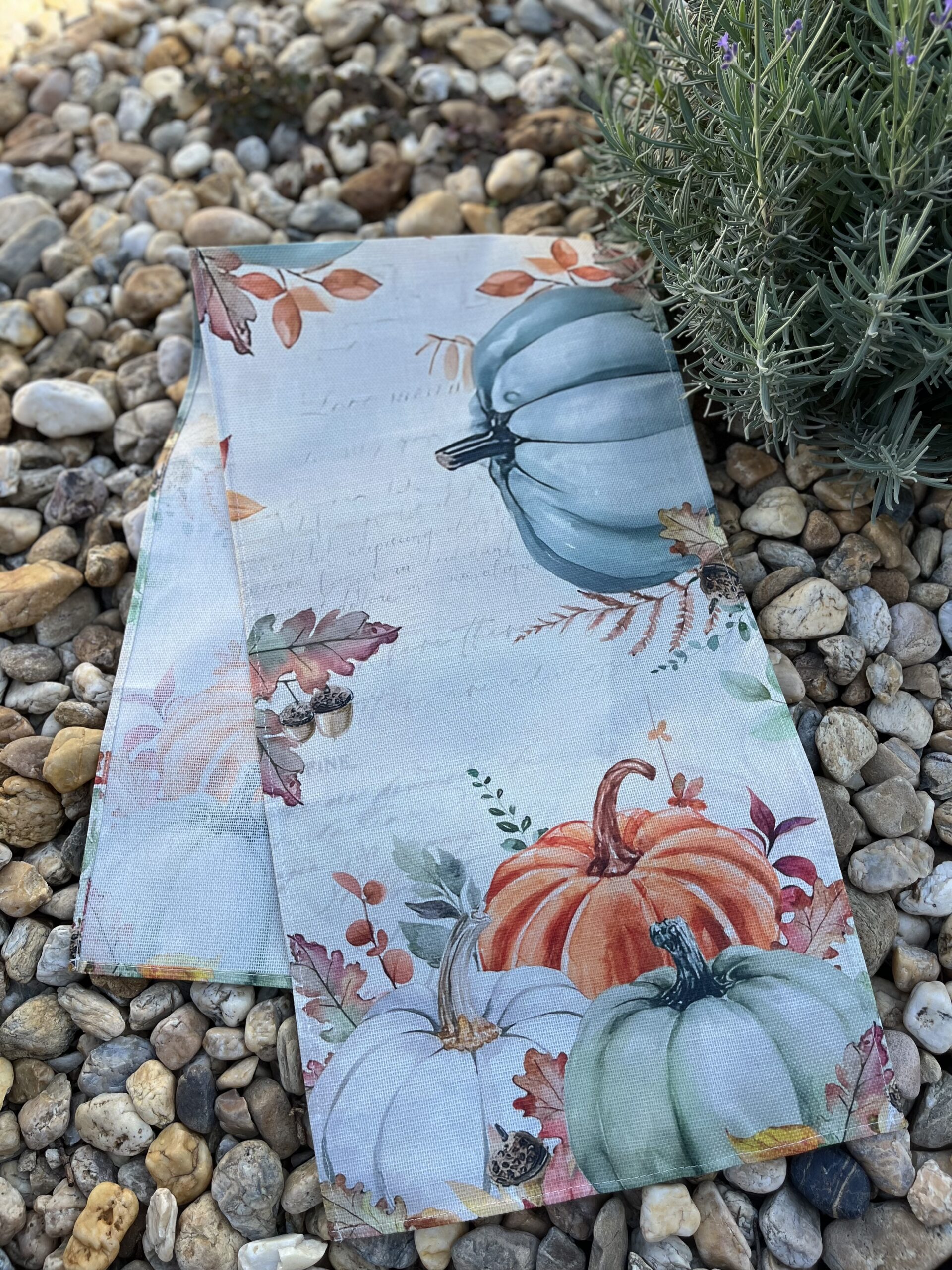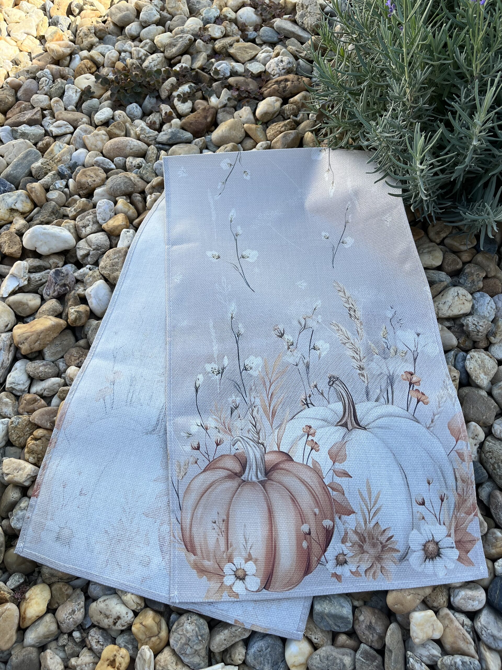 120*33 cm-es,mesés pasztell színű, tökös vászon futóval varázsolhatod otthonod hangulatosabbá.