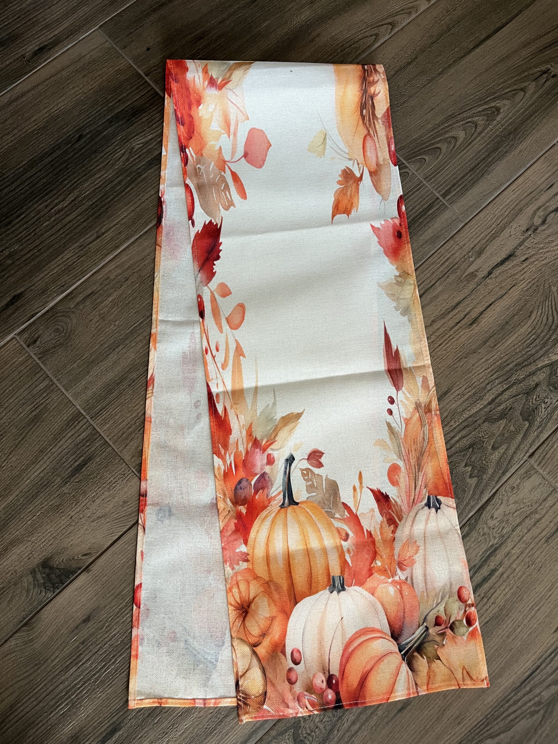 180*33 cm-es, csodás őszi színekkel készített, vászon, tökös futó terítővel csempészhetsz mesés hangulatot otthonodba vagy szerezhetsz örömöt másoknak.
