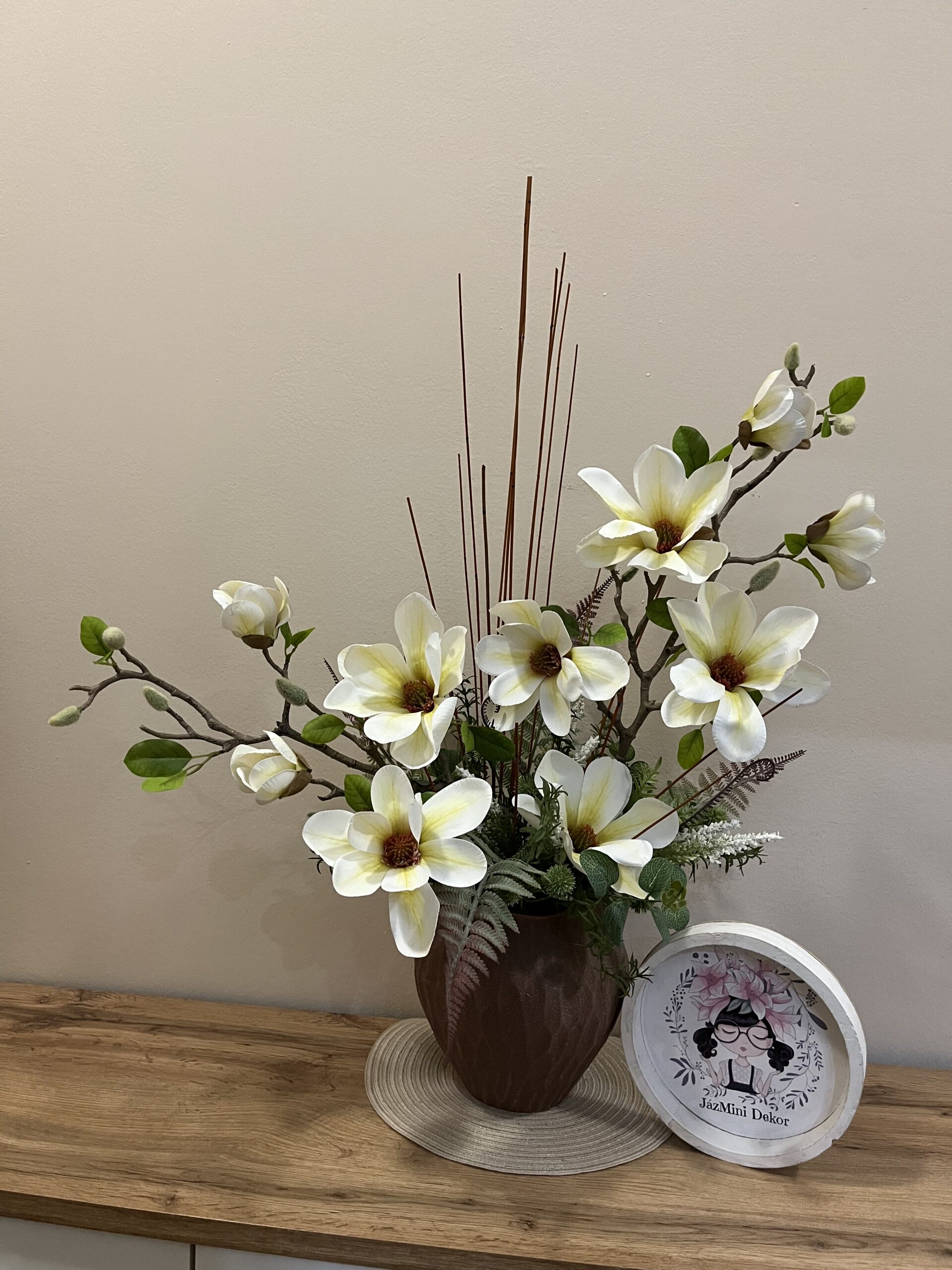 Varázsold újjá nappalidat ezzel az egyedi, élethű magnólia ágakból összeállított dekorációval!
