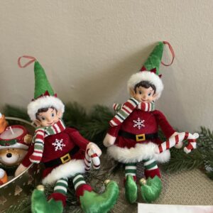 Borzasztó bájos karácsonyi  Elf manó,mely felakasztható,szép kidolgozású plüss öltözetben,a kezében egy cukorkabottal. Kedves ajándék vagy dekorációja lehet otthonodnak.